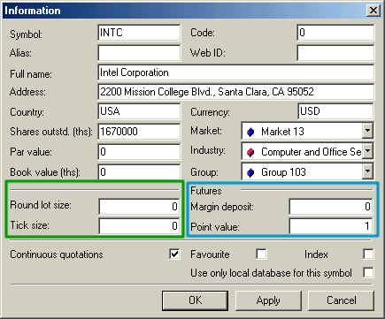 The remaining settings are per-symbol and are accessible from the Symbol->Information window.