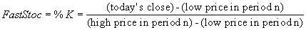 It displays the current days price at a percentage relative to the securitys trading range (high/low) over the specified period.