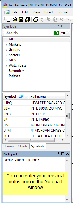 saved/read back as you browse through symbols. Notes are global and
