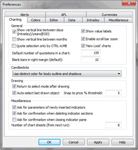 - Maximum number of chart sheets - defines how many chart sheets (tabs) should
