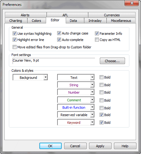 - Copy As HTML - when checked, the AFL editor on Edit->Copy