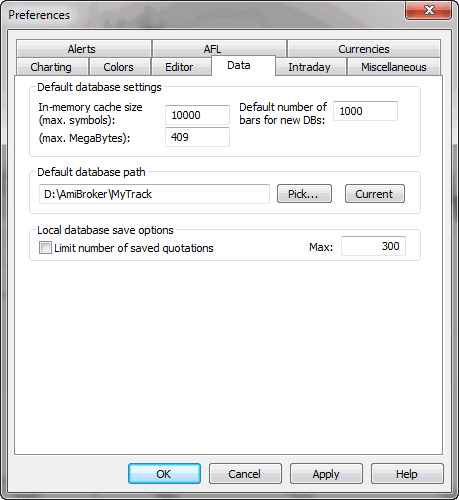 - Limit number of saved quotations - if this option is ON, AmiBroker